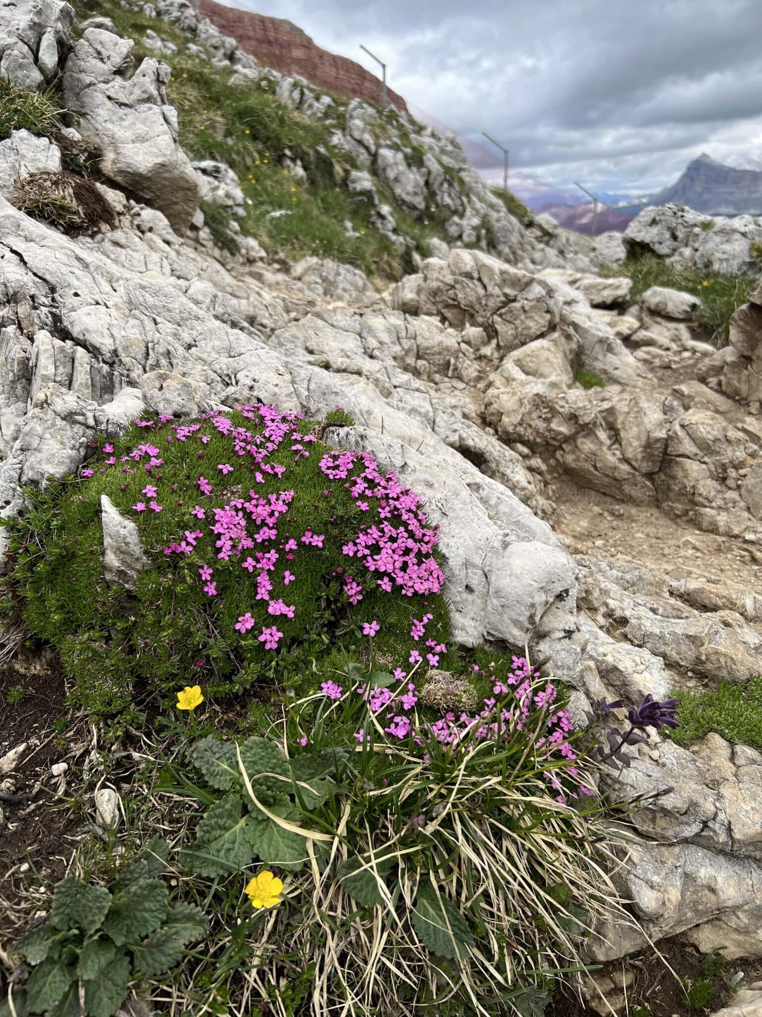 Ten poslední úsek mně vždycky připadá jako cesta po obří skalce. Všude skály, kameny a mezi nimi se statečně derou ven horské květinky. 🥀 Barevné polštáře, křehké zvonečky. Každý druh je jiný a dohromady tvoří nádhernou mozaiku. Já pak místo svižného postupu pořád zastavuji, šplhám a fotím, obdivuji a zase fotím. 📷 Můj muž už to vzdal a bere to s úsměvem, protože ví, že s mobilem mezi skalničkami se mnou žádný rychlý výstup nehrozí.