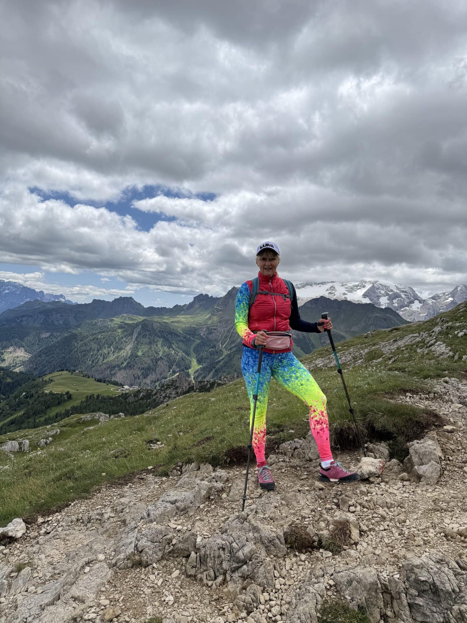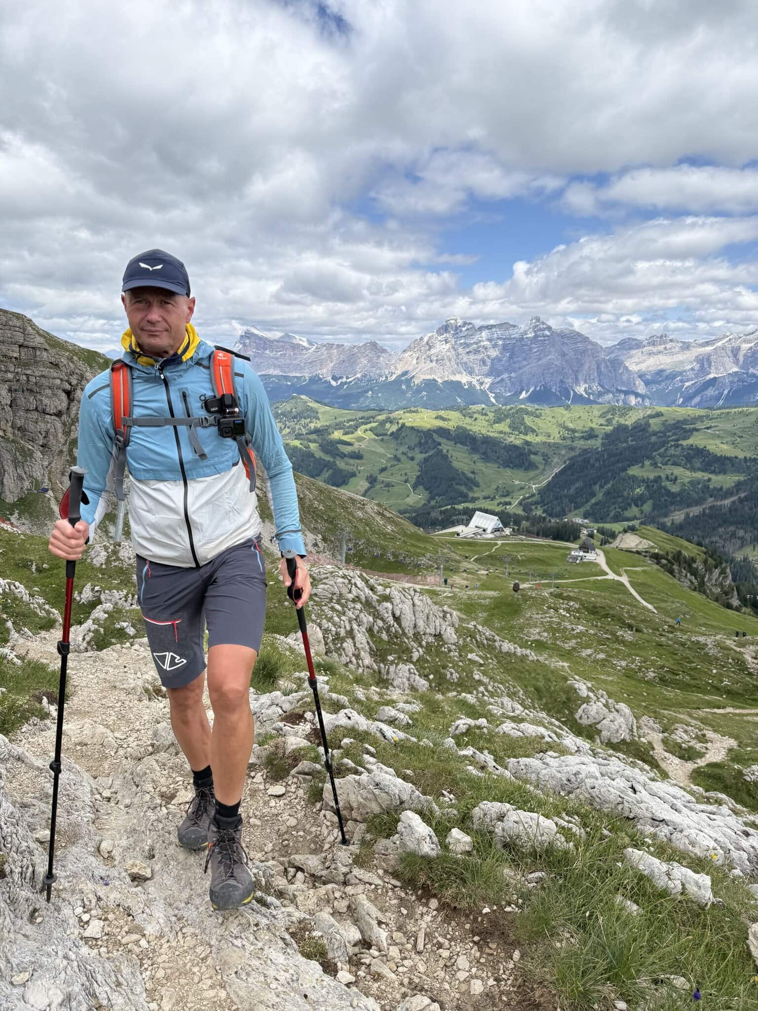 Na chatu jsme se vydali tentokrát z Colfosca, odkud se to lesní cestou klikatí přes hory a údolí. Cesta má své kouzlo, protože se střídá strmé stoupání i místa, kde se otevře výhled a člověk má pocit, že Dolomity drží „jako na dlani“. 💁♀️ Stále objevujeme nové varianty tras, ale nikdy se nevyhneme vrcholku Piz Boe. To je stanice lanovky s krásnou restaurací. Tentokrát jsme se se před výšlapem do vyšších poloh posilnili uvnitř, u praskajícího krbu, trochu netypické kulisy letního treku. 🔥 Jiné roky se venku na terase povalujeme a připékáme na sluníčku v lehátkách s Proseccem v ruce. 🥂 Odtud už nás čekala jen skalnatá část, kde se trekové hole stávají na cestě našimi velkými kamarády. Zapojíš svaly celého těla, a především ulevíš nohám. Krok za krokem jsme nabírali převýšeni, až se konečně objevil cíl – Kostnerova chata. Tentokrát to bylo bez sněhu, ale vloni tam na nás čekal. ❄️