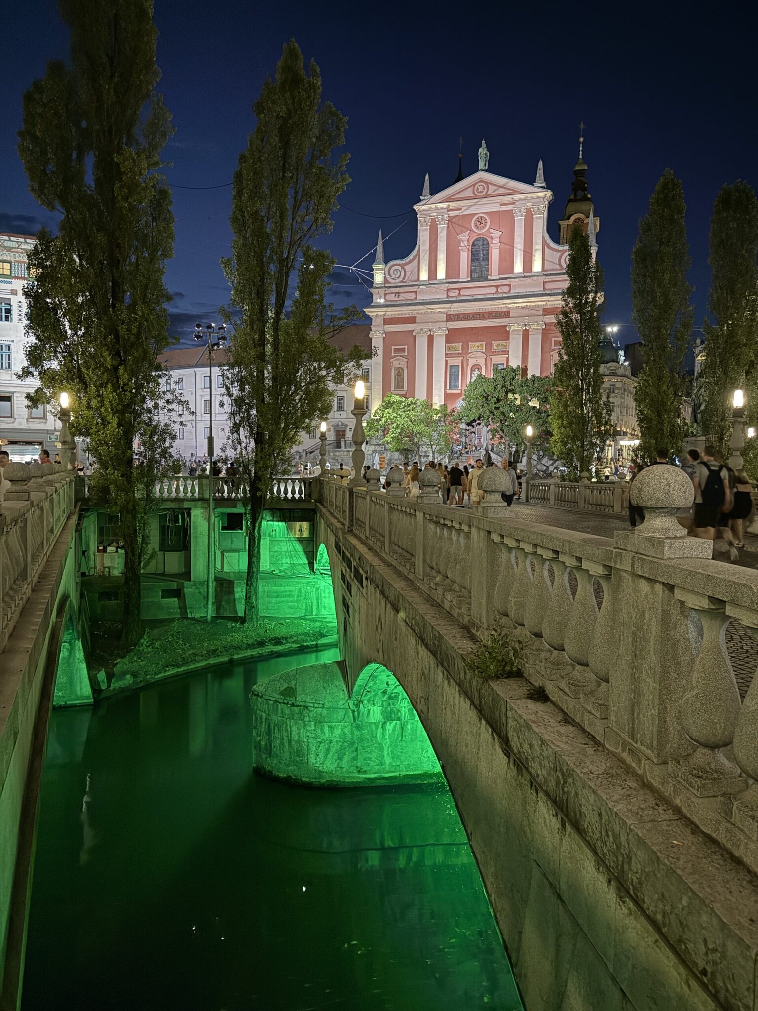 Večer jsme se vydali za zážitkem do nočního města a upřímně, byli jsme fakt překvapeni, jak moc to tam žije. 💃 Centrum bylo plné lidí, místních i turistů, všichni se smáli, posedávali podél řeky, procházeli se po mostech, zaplňovali zahrádky barů a restaurací. Atmosféra byla uvolněná, přátelská, a tak trochu nakažlivá. A pokud si chcete sednout v dobrém podniku, tak se asi doporučuje rezervace, protože bez ní jsme těžko hledali prázdný stůl. Po delším „číhání“ jsme si svůj stůl nakonec „ulovili“. Lublaň, jak jsme na vlastní oči viděli umí žít i po setmění a my jsme chtěli být chvíli součástí.