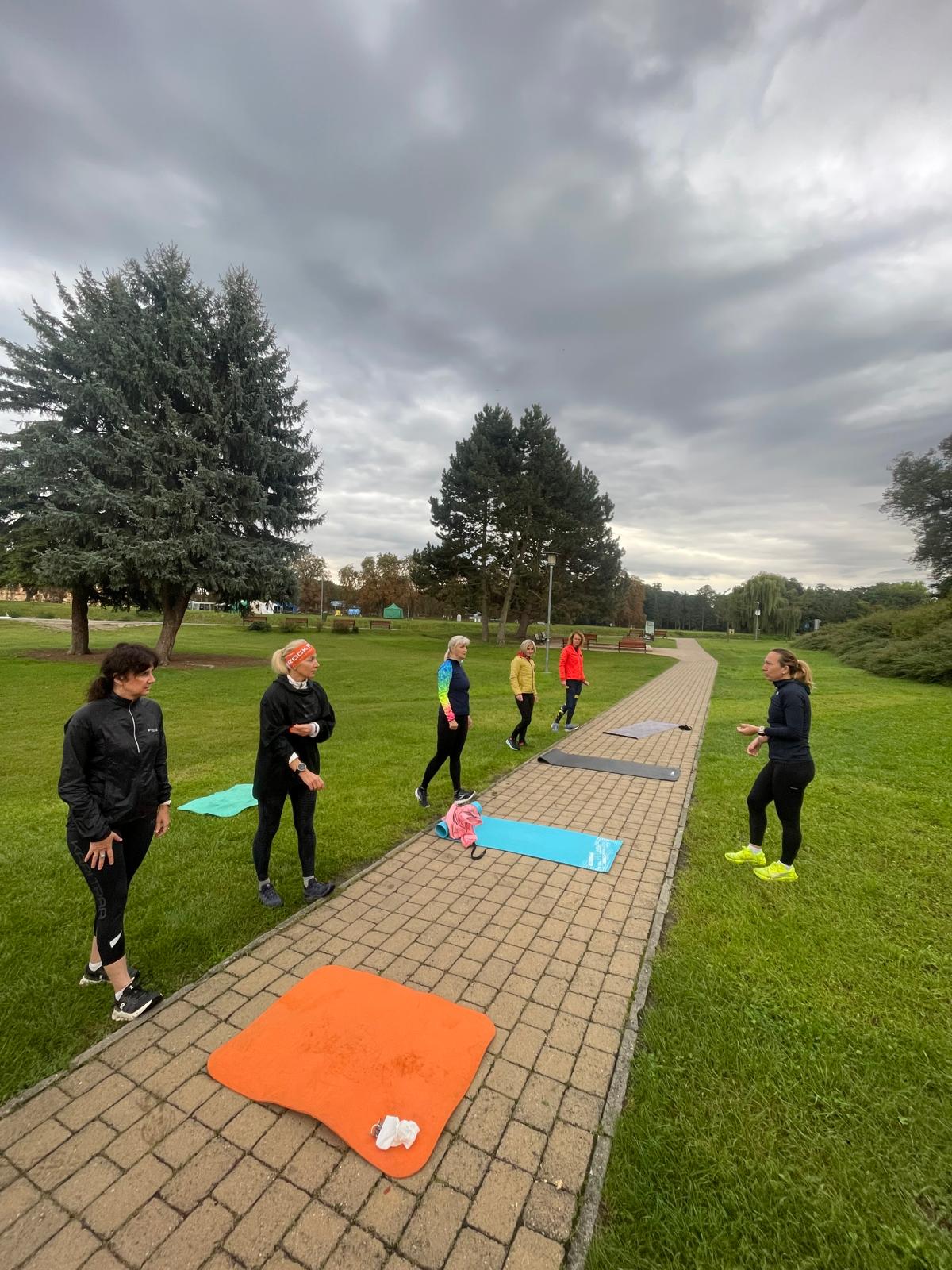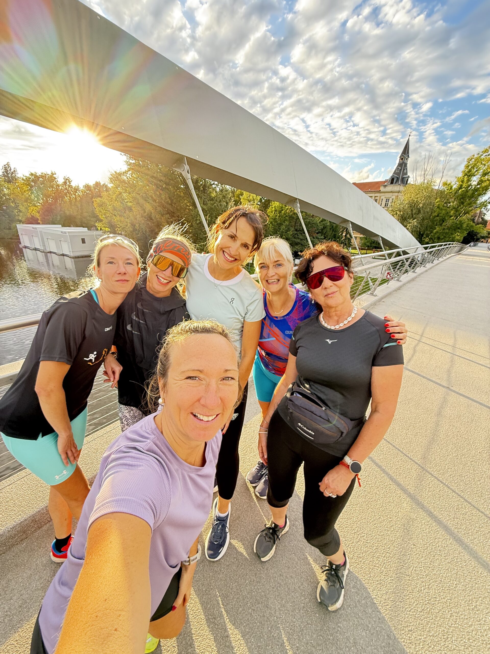 Sobotní ráno jsme odstartovaly stylově, a to s karimatkami, v krásném parku pod hradbami. 🌳 Nejprve důkladné protažení, a pak už se šlo na věc. Menší „kondičnější“ skupinka vyrazila dřív na 8 km a my jsme se k nim později u Labe připojily a společně jsme nasbírali dalších 10 kilometrů. 🏃♀️➡️ Nechyběla ani běžecká abeceda a k tomu spoustu dobrých rad od Evči, včetně toho, jak běžet a vypadat elegantně…a ne jako když se snažíte chytit ujíždějící autobus. 🚌
