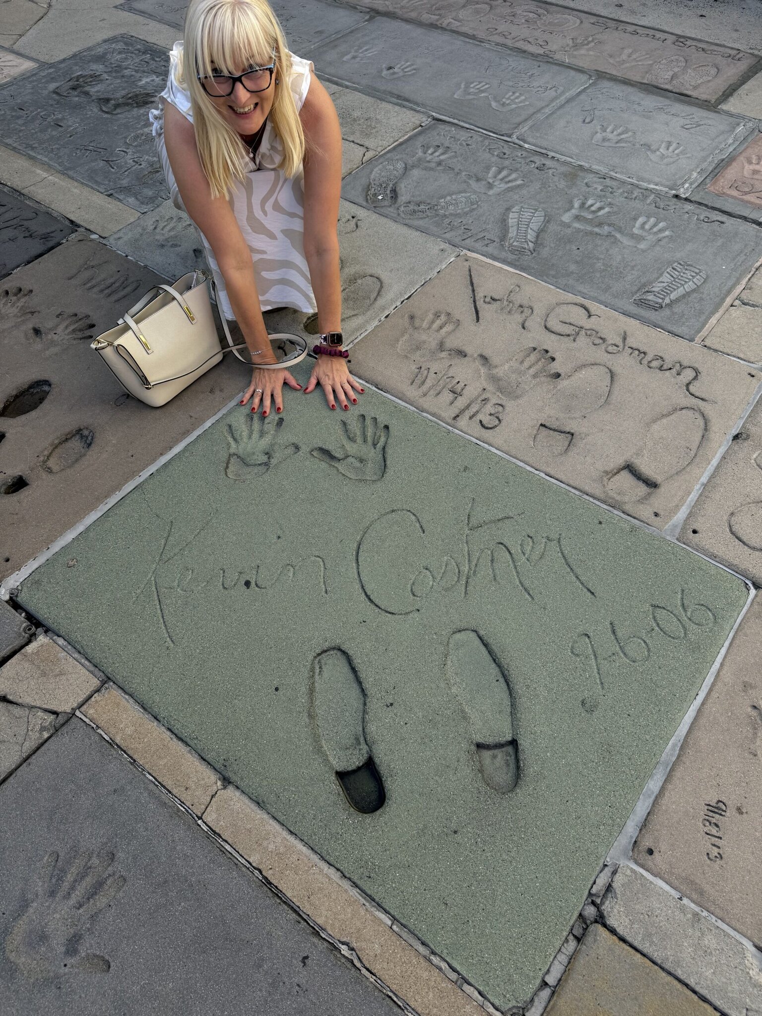 O pár kroků dál před Chinese Theatre je to ale už naštěstí trochu jiný příběh. Otisky rukou, nohou, podpisy legend. Tam už jsem se cítila konečně jako v Hollywoodu. 🦶