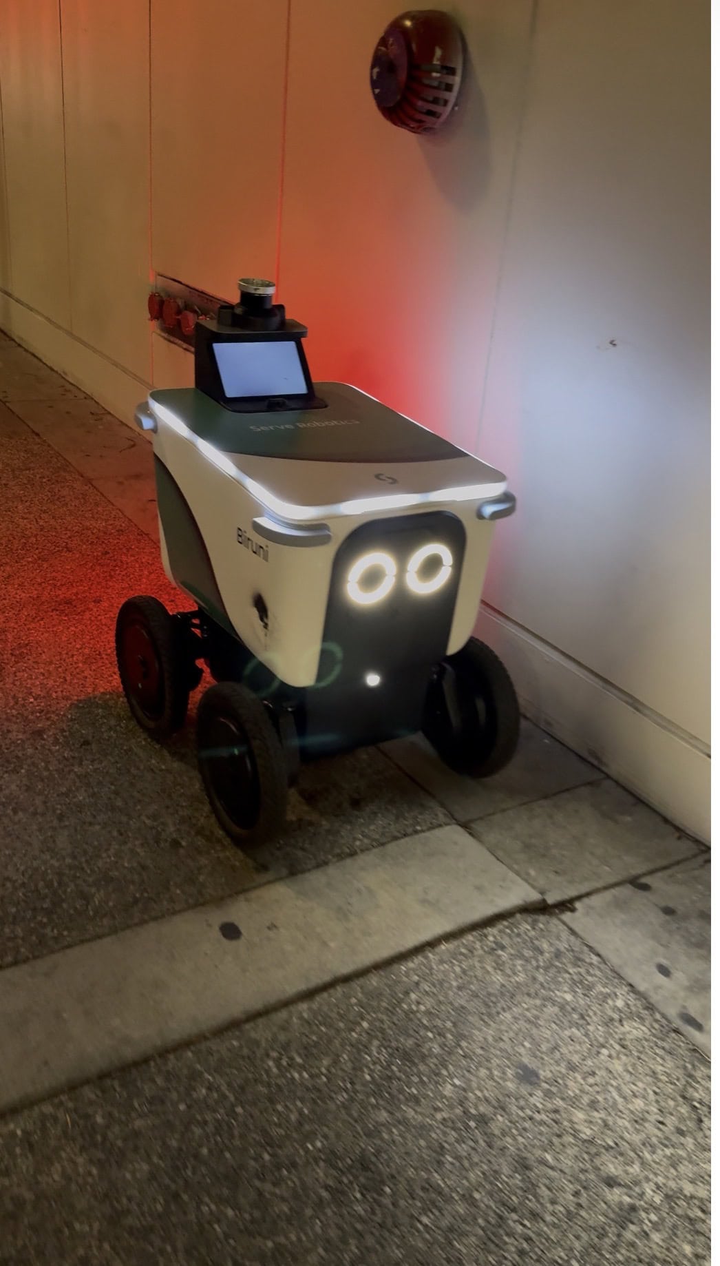 A první wow efekt? Malý hranatý robot na kolečkách, který si to suverénně šinul po chodníku a rozvážel jídlo. 🍱Zastavoval na červenou, vyhýbal lidem, dorazil na adresu, zastavil, zamrkal očkama a čekal. 👀 Já za ním běhala jako dítě a natáčela ho.