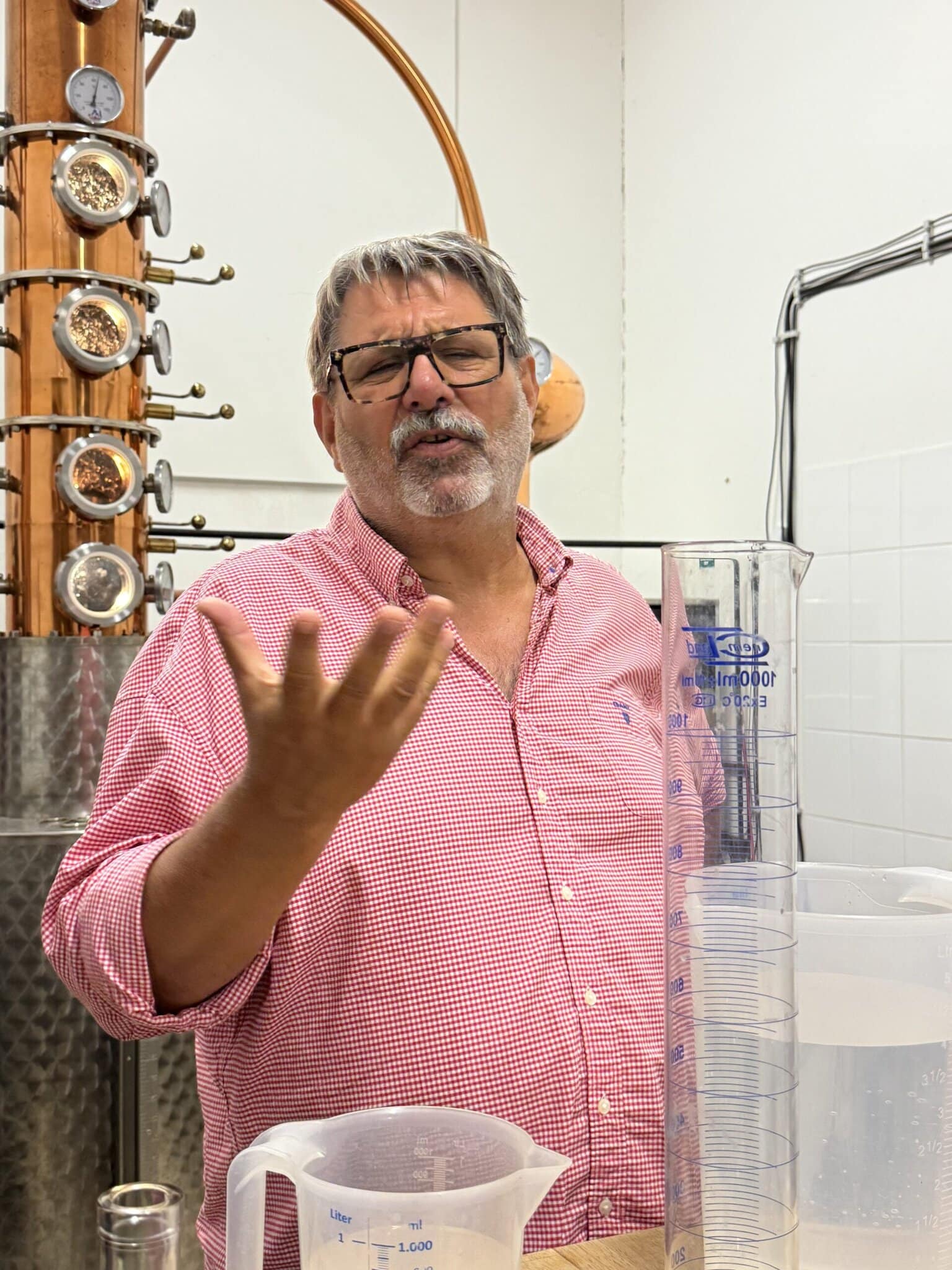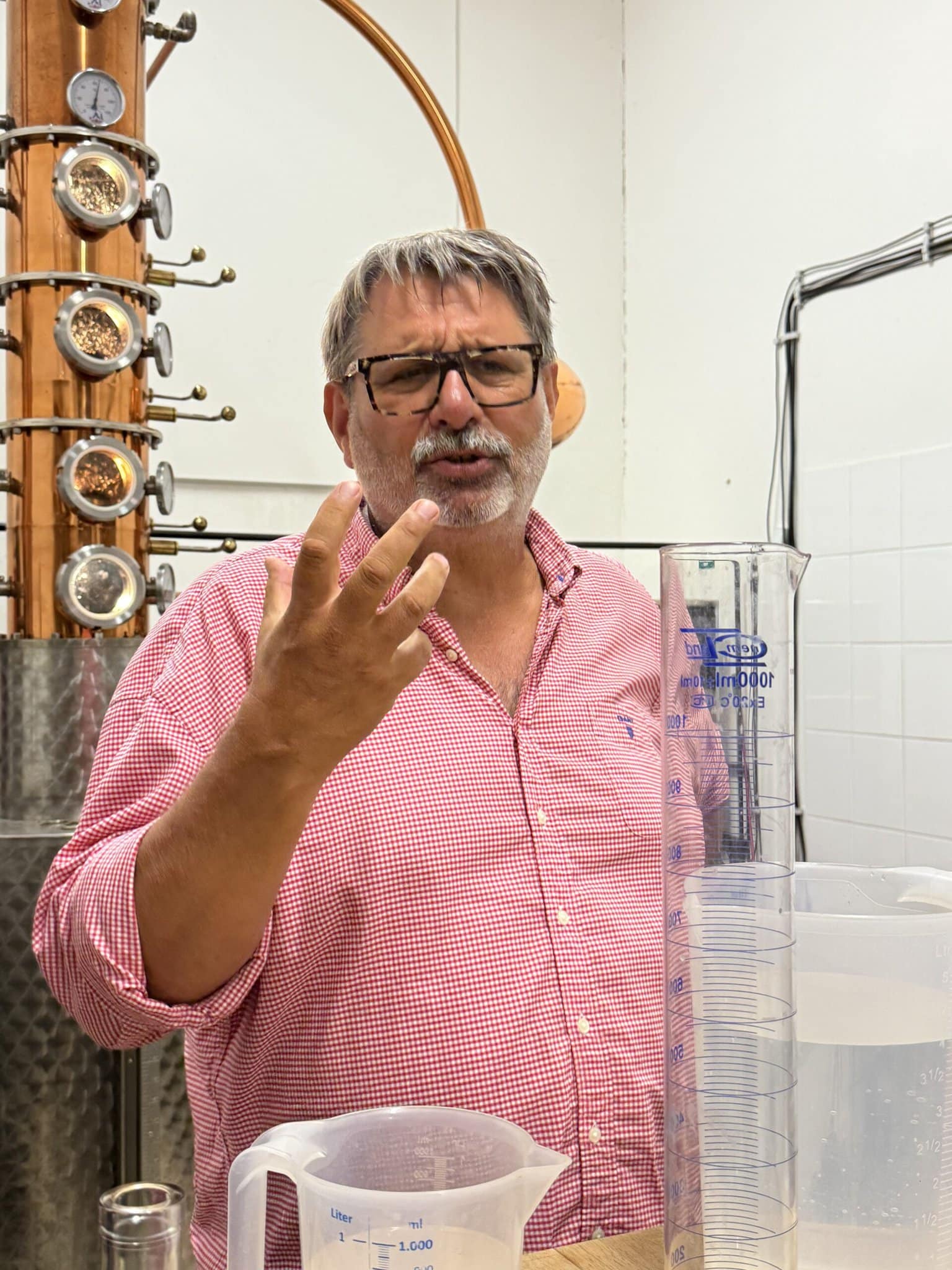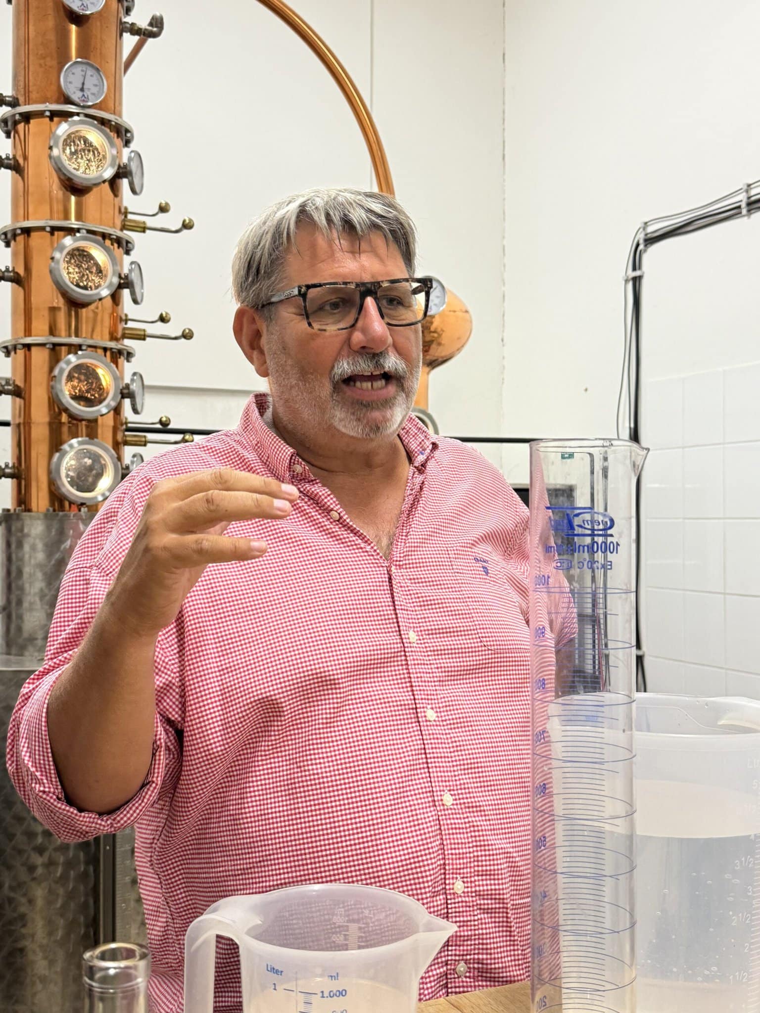 Výroba ginu, to není žádná nuda, ale show s bubláním a hučením. 🫧 Robert nám ukázal, jak to celé funguje. Od výběru bylin přes maceraci až po samotnou destilaci. 🪴 Vysvětluje to ale tak, že i kdybys v životě neslyšel slovo botanicals, stejně se „chytneš“. Je to povídání s humorem, ne suchá učebnice chemie. Navíc je stále se na co koukat. Destilační zařízení vypadá jako takový malý oltář. V něm to pořád probublává, vrní a pulzuje energií. Obyčejný člověk jako já jen stojí, kouká a říká si: „Tak tohle asi je fakt magie“. 🧙