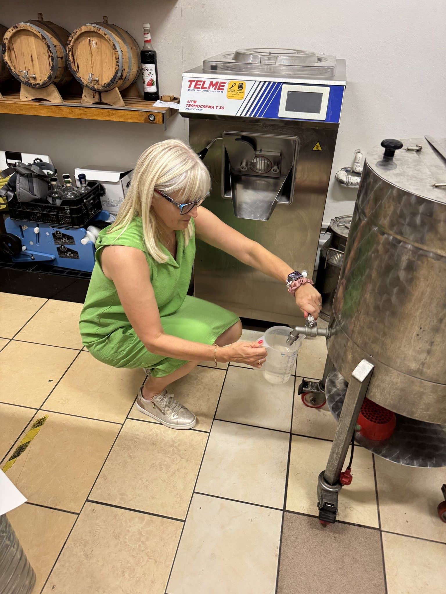 A pak ten moment, kdy se láhve plní, zátkují, voskují a my si děláme vlastní etikety. No, kdo má doma gin s názvem, který ho napadl mezi dvěma loky?! 😂 A taky kolkování pod kamerou! To je kapitola sama pro sebe. Přenáší se jen obraz nikoliv zvuk, takže povídat si u toho můžeš, co chceš!